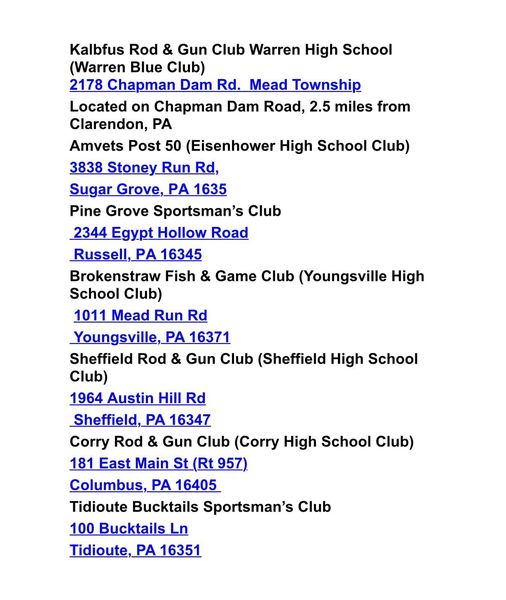 Summer 2024 Warren County Trap League Schedule